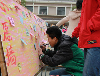 現(xiàn)場(chǎng)還吸引很多同學(xué)報(bào)名參加2014年的暑期支教。一名陜西籍大一女同學(xué)在現(xiàn)場(chǎng)預(yù)約報(bào)名時(shí)表示明年暑假愿意全額自費(fèi)前往貴州支教,為那些貧困山區(qū)的孩子們奉獻(xiàn)自己力所能及的一份力量。現(xiàn)場(chǎng)解說(shuō)員也將這次暑期實(shí)踐過(guò)程中的收獲和感想與觀摩的同學(xué)進(jìn)行了交流分享,使觀摩同學(xué)更加明白大學(xué)生社會(huì)實(shí)踐的意義,也使他們?cè)鰪?qiáng)了對(duì)實(shí)踐活動(dòng)的認(rèn)知。
