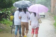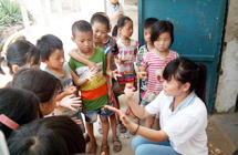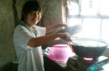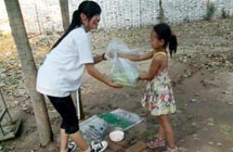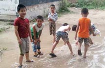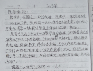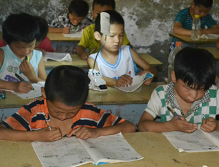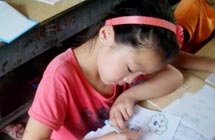 鄉(xiāng)村小學,沒有體育器材,沒有娛樂設(shè)施,孩子們只能選擇自娛自樂。有次,志愿者們看到孩子們用一根細樹棍,一塊石柱,就玩起了翹翹板。每到夜晚,志愿者的住處就擠滿了學生,大家或做游戲,或一起用筆記本電腦看哆啦A夢,從孩子們看動畫片的那份專注,志愿者們看得出來,孩子們很少能看到這種動畫片。天陰教室昏暗,加上學校經(jīng)常斷電,孩子們不得不在陰暗的環(huán)境中上課。老師拿來自己的小臺燈給在角落的孩子照明,即使在這樣的情況下,孩子們依然學習很認真。申倩老師應該是最受歡迎的啦,她多次收到孩子們的“示愛書信”,那些小紙條上往往寫著“音樂老師你唱的歌很好聽,我喜歡你”