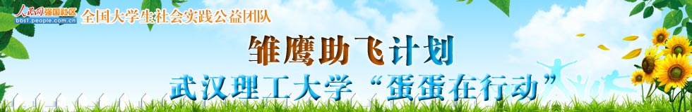 2013年,人民網招募50個大學生團隊組成“全國大學生社會實踐公益團隊”,走進基層開展多種形式的支教助學、生態保護主題公益服務活動。隨著暑期到來,各團隊已陸續開始活動,并將全過程通過大學生論壇進行網絡直播。武漢理工大學“蛋蛋在行動”團隊是50支重點團隊之一,7月7日至8月3日,他們分三批走進貴州省遵義縣永安鎮習水縣陽光古天樂小學、貴州省仁懷市茅壩鎮田壩小學、廣西南寧市馬山縣古寨鄉隆林小學開展支教。