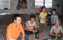 我被分到了第三組,也是這次家訪去的最遠的地方。和董啟凡,楊愫愫等隊員一起需要走過崎嶇不平的山路,爬上一座一千多米的高山。有的隊員穿的是短褲,當地山上有一種草是有著尖利的刺,劃傷了隊員的腿,這提醒了我們出去家訪一定要穿長褲。一個半小時后,他們到了第一位學生陸純的家里。陸純的家由于在建新房,全家人在簡易帳篷里生活,條件十分簡陋。志愿者受到了陸純家長的歡迎,陸純的班主任沙士博也跟家長溝通了陸純在學校的表現和情況。陸純是一個比較聰明的孩子,數學成績比較好,但平時比較貪玩,上課的時候不愿意舉手發言。班主任把這些情況反映給家長后,陸純的媽媽表示以后一定多多抽時間來多關心孩子的學習和生活。最后隊員董啟凡幫一家人拍了一張全家福...[詳細]>>>
