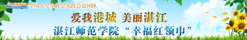 2013年,人民網招募50個大學生團隊組成“全國大學生社會實踐公益團隊”,走進基層開展多種形式的支教助學、生態保護主題公益服務活動。隨著暑期到來,各團隊已陸續開始活動,并將全過程通過大學生論壇進行網絡直播。湛江師范學院“幸福紅領巾”服務隊是50支重點團隊之一,7月8日至18日,他們在烏石鎮的潭板小學、潭朗小學和三教小學,通過舉辦“綠動,循環再用”環保創意設計大賽、“我的海洋世界”繪畫比賽、向村民發放“創衛”宣傳知識手冊和環保知識扇子,“攜手三教獻青春 共筑幸福中國夢”文藝匯演等實踐內容,開展生態環保教育。