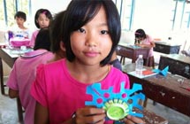 活動現場,孩子們盡情發揮自己的想象,用有限的廢紙、易拉罐等廢棄材料創造出了各種富有特色的手工藝作品。許多學生的創意作品超出了隊員們的想象,隊員們忍不住拍手叫好。雷州市烏石鎮三教小學六年級學生用日常可見的易拉罐瓶設計出簡易的小垃圾桶。將平凡的垃圾桶擬人化,還在設計出來的垃圾桶上寫著“保護環境、愛護家園”等標語。二年級學生設計出的綠色太陽花,說那是一朵綠花,那是一個希望。 ...[詳細]>>>