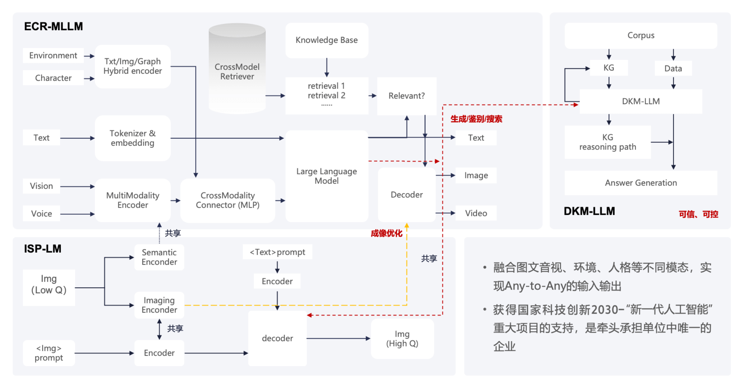 “白澤”是人民中科與傳播內容認知全國重點實驗室聯合發布的國內首個跨模態模型,在圖文音視等模態之外還創造性地引入了社會、人格、環境、政務等模態,并突出強化了主流價值觀、內容安全、信創算力等可信約束機制?!鞍诐伞比〉弥醒刖W信辦的互聯網信息服務算法、生成式人工智能服務等備案,在一個基礎模型上實現了跨模態的理解、搜索和生成的互相增強,已在認知對抗、數字政務、輔助決策等領域實現了規?;瘧?。