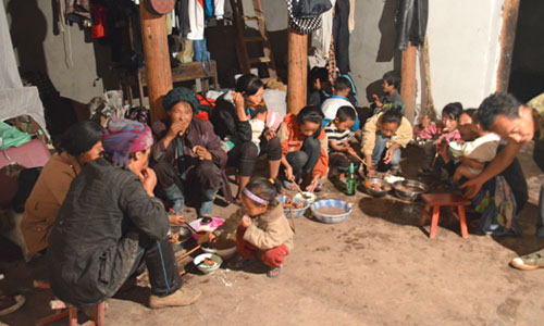 對于偏遠山區的貧困與落后,雖然隊員們早有心理準備,但實際到了兩河口鎮,當地艱苦的條件還是遠遠超出了這群在大城市里生活慣了的年輕人的想象。沒有網絡,白天斷電,有時為了發送一條短信打一個電話需要走很遠的路才會有信號。飲食也是一大挑戰,實踐隊的伙食是清一色的土豆,而且一天只有兩頓土豆,這是當地的習俗。沒有桌子,所有人就在地上吃,沒有筷子就用手。煮的土豆吃膩了就吃烤土豆,扒皮后蘸點調料,吃得滿嘴滿手黑乎乎的。對于這樣的飲食方式,隊員們一開始的確不適應,覺得有點落后和不衛生,但面對彝家人的熱情好客,隊員們也就入鄉隨俗,和彝家人一起享用起大山里的土豆來。為了感謝隊員們的付出,彝家人偶爾也會給隊員們做蕎麥餅換換口味。