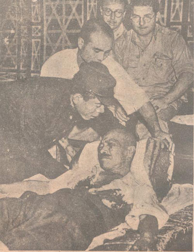 1945年8月,日本無條件投降后不久,東條英機自知罪責難逃,舉槍自殺。圖示他中彈獲救時之痛苦情狀。作為頭號戰犯,他在獲救后仍被送上絞刑架。三絞廢命。