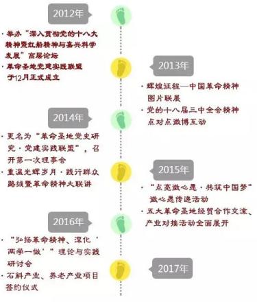 2012年12月,在嘉興、井岡山、遵義、延安、石家莊市委組織部的共同倡議和精心策劃下,五地組建成立“革命圣地黨建實踐聯盟”。2014年,聯盟更名為“革命圣地黨史研究?黨建實踐聯盟”,并在中央黨史研究室設立聯盟聯絡處。聯盟自成立以來,已先后舉辦中國革命精神圖片展、群眾路線革命圣地行等大型主題活動。此次現場考察和理論實踐研討活動,五地代表分別就扎實推進“兩學一做”學習教育及黨史研究工作開展了深入交流。