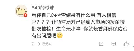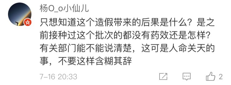 網友“楊O_o小仙兒”表示:“只想知道這個造假帶來的后果是什么?是之前接種過這個批次的都沒有藥效還是怎樣?有關部門能不能說清楚,這可是人命關天的事,不要這樣含糊其辭。”
