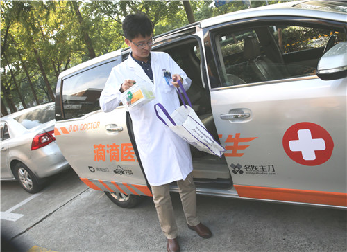 即將上門為市民問診的“滴滴醫生”在整理藥箱(來源:東楚晚報)